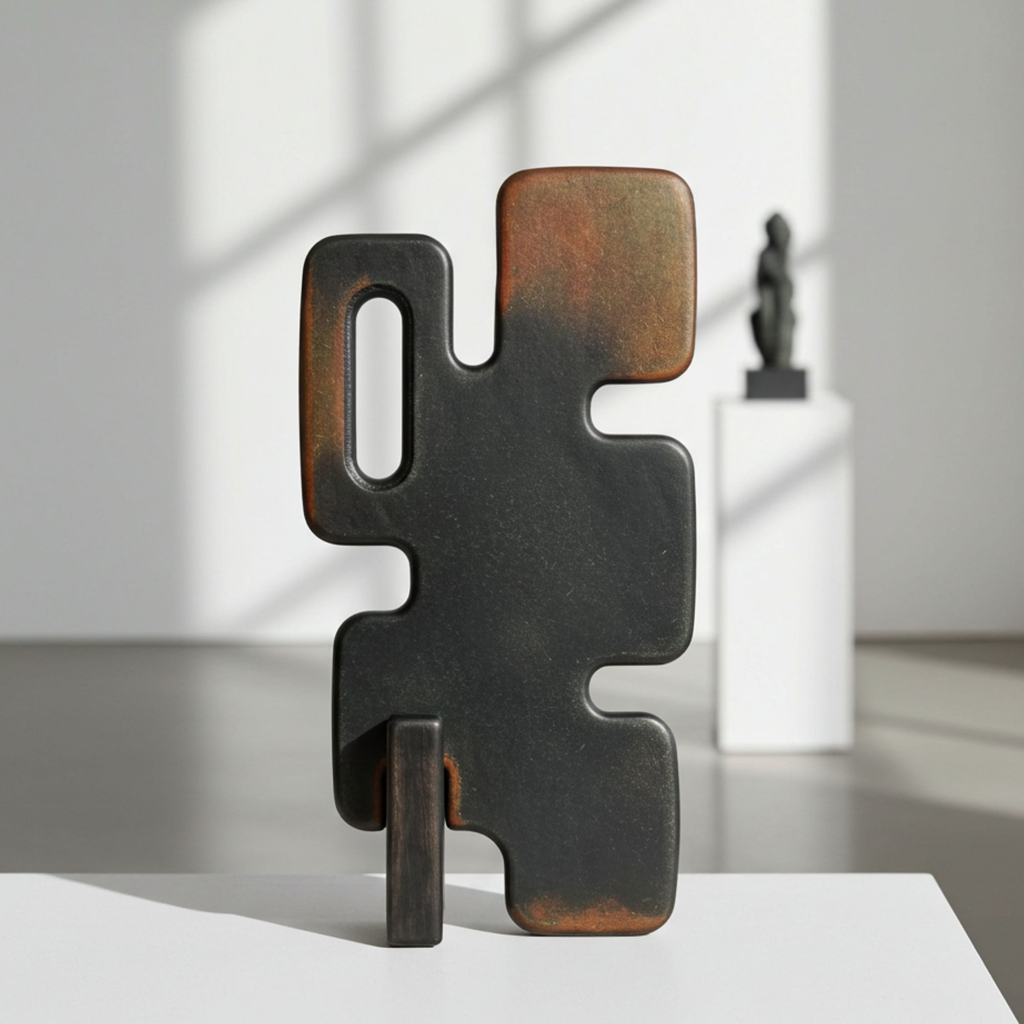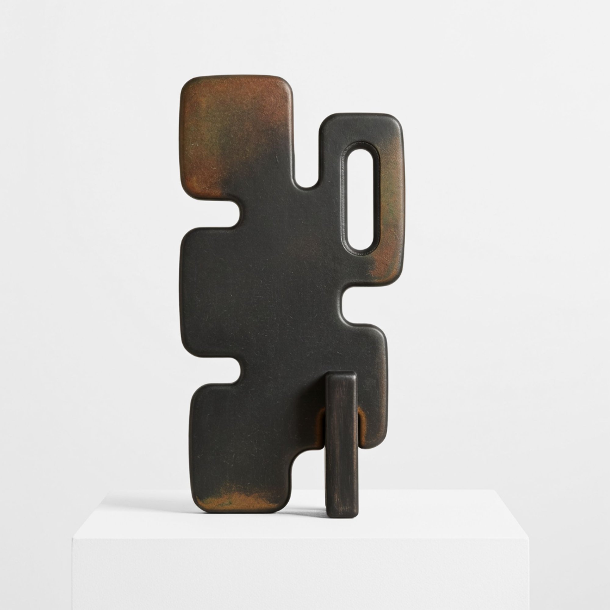 This edition is entirely unique. Its surface bears a singular patina, hand-dyed in layered tones of bronze, moss, and charcoal. The finish evokes erosion and memory, as if the object had weathered time rather than emerged from it.