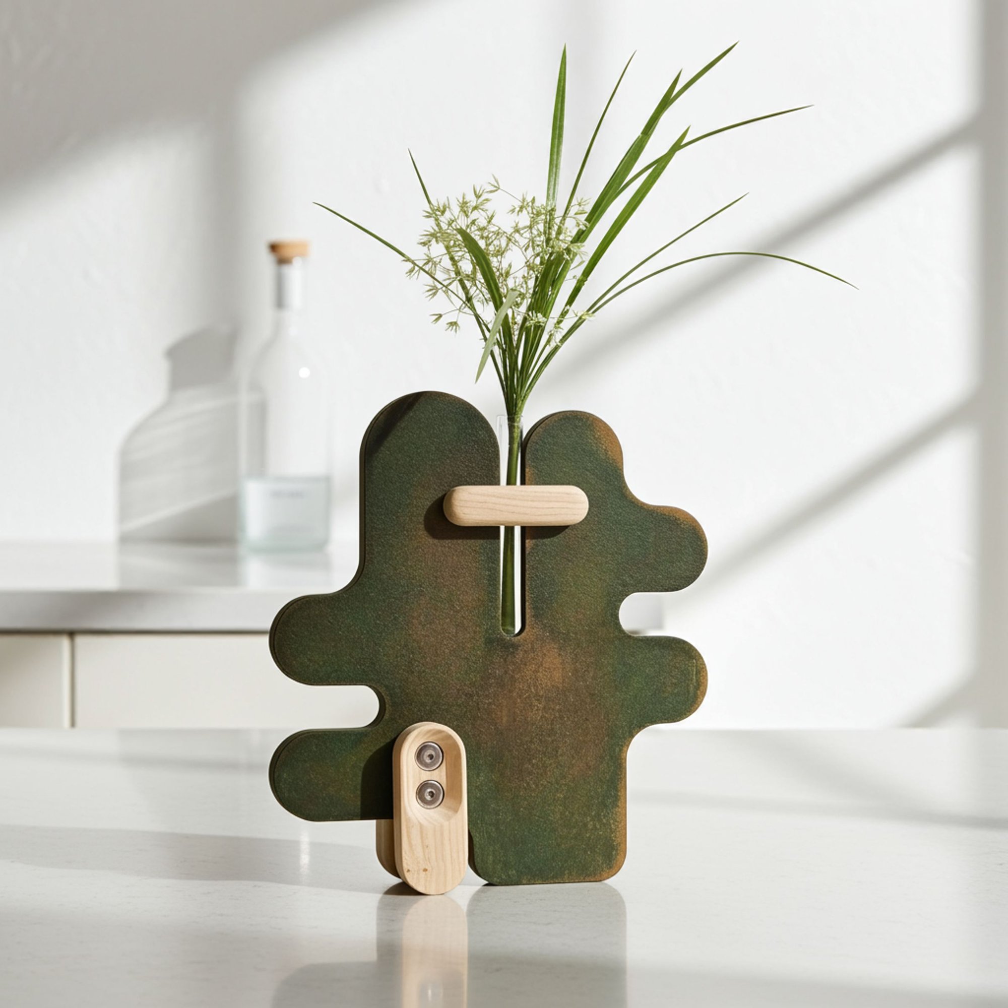 QAQTO blurs the boundaries between art and design with its unique blend of function and sculptural beauty. The glass water container is included, which will be very useful if you wish to showcase natural flowers, bringing nature indoors with greenery, natural materials, and organic shapes.