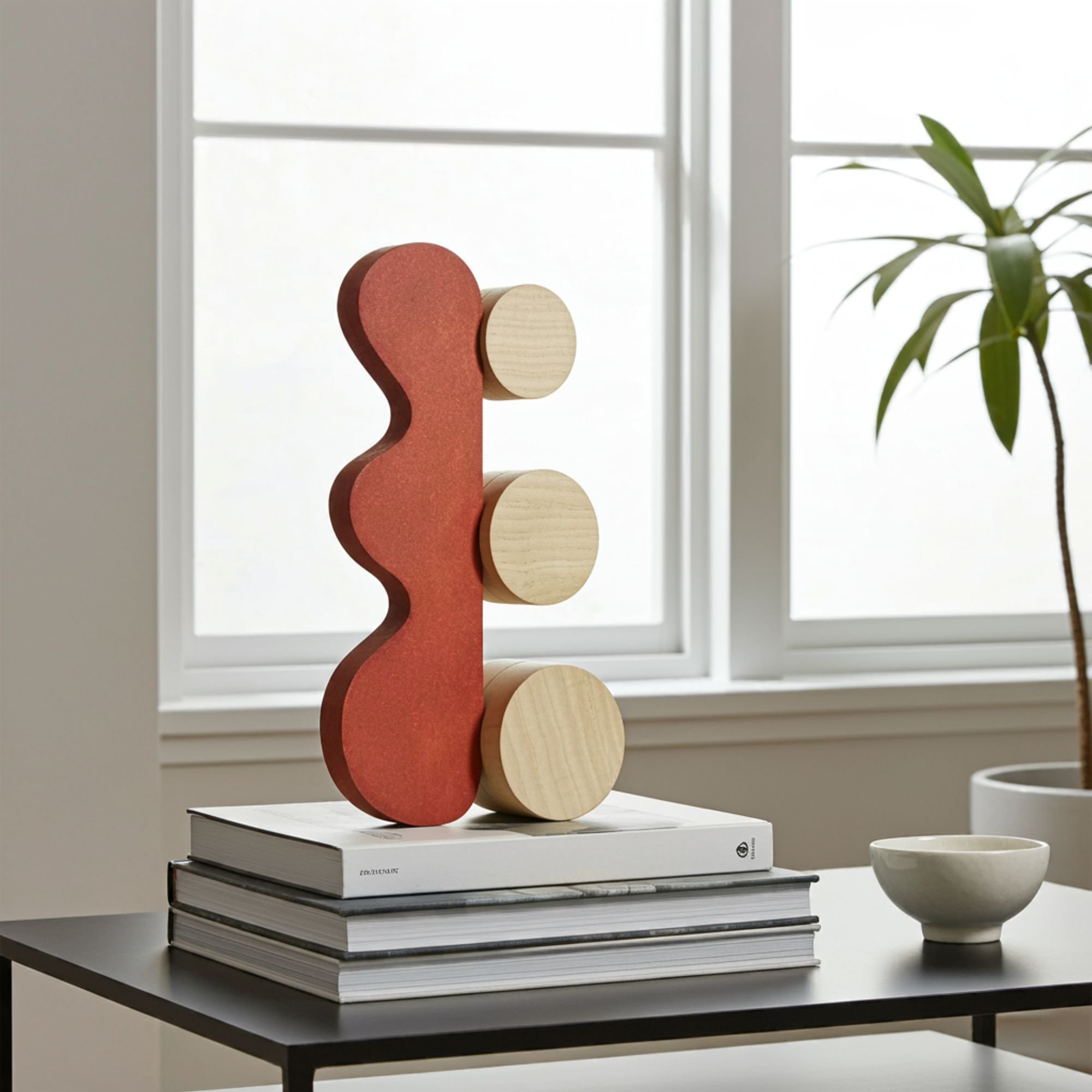 Minimalist decorative object designed to be displayed either vertically or horizontally. Achieving its visual simplicity, with elements that appear to barely touch, as if floating effortlessly and defying gravity, requires meticulous craftsmanship - each element is carved with precision.